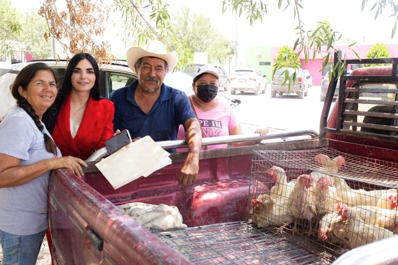 La alcaldesa Miriam Soto completó la segunda fase de un programa de distribución de gallinas ponedoras que beneficia a 120 familias de Meoqui. En total se entregaron 1,200 pollitas de cinco semanas de edad a través de dos etapas, proporcionando 10 aves por familia con un costo accesible de 500 pesos por paquete, gracias al subsidio del 50% otorgado por la Dirección de Desarrollo Rural.