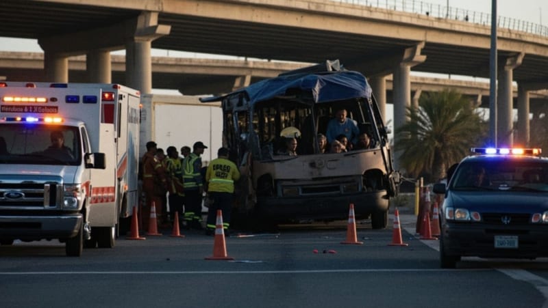 Un camionazo registrado la madrugada de este jueves 16 de abril de 2026 en la salida sur de la capital, en el kilómetro 208 de la carretera hacia Delicias, dejó cuatro personas sin vida y al menos cinco heridos. Las víctimas fatales quedaron prensadas en la parte delantera del autobús tras el choque.