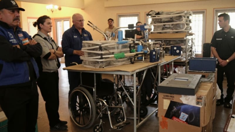 Dentro del inventario destacan 18 tanques de oxígeno de diversos tamaños, 19 andadores, 14 teléfonos de oficina, 8 sillas de ruedas, 11 bastones especializados, 9 televisores y 4 máquinas de oxígeno. También se incorporan camillas de hospital, lámparas dentales, nebulizadores, mobiliario de oficina, baumanómetros y soluciones de inhalación, entre otros insumos médicos.