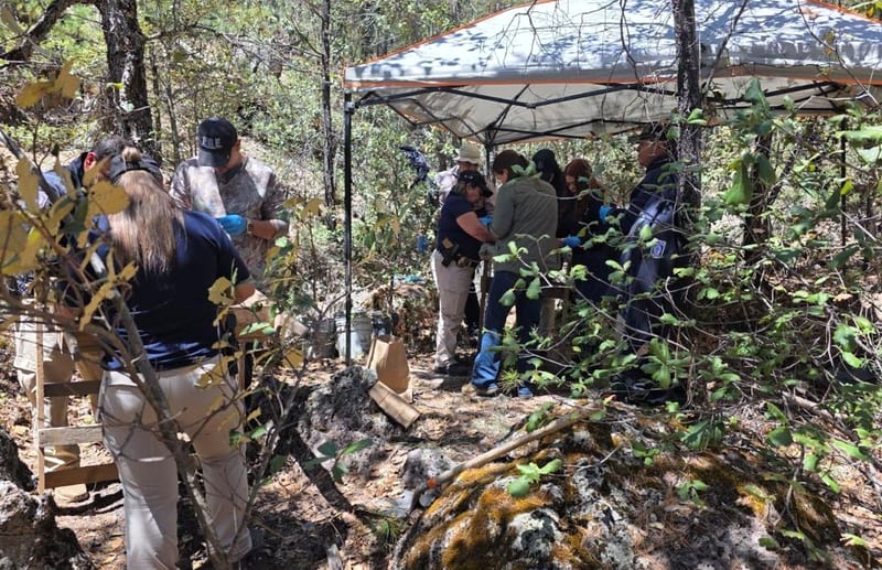 Los trabajos de búsqueda y recuperación del material se realizaron desde tempranas horas del martes 7 de abril de 2026. En las tareas participaron agentes del Ministerio Público, elementos de la Agencia Estatal de Investigación y un perito especializado en Criminalística de Campo y Fosas Clandestinas.