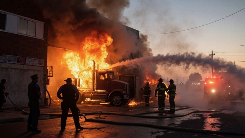 Incendio en taller de tráileres en el sur de la ciudad consume cabina y motor