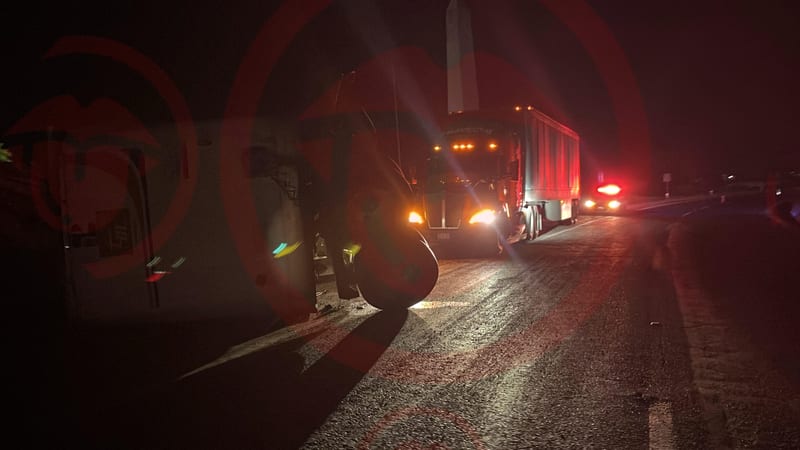 De acuerdo con los datos iniciales, el operador del tractocamión se desplazaba de sur a norte cuando sintió un tirón repentino. Al revisar por los espejos retrovisores, notó que la caja trasera se había soltado de la estructura de acoplamiento. El contenedor, sin control, recorrió varios metros antes de perder equilibrio y volcar hacia un costado.