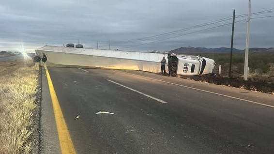 Tráiler volcado causa cierre parcial en carretera Delicias-Chihuahua